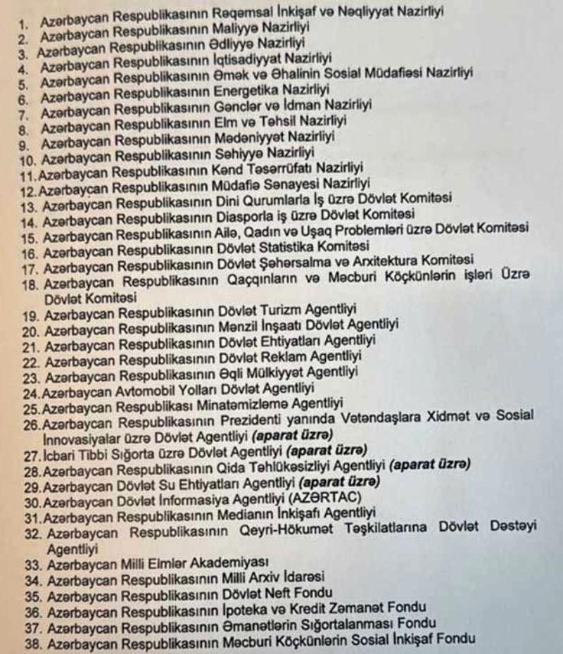 Qeyd edilən dövlət orqanları (qurumları) aşağıdakılardır: