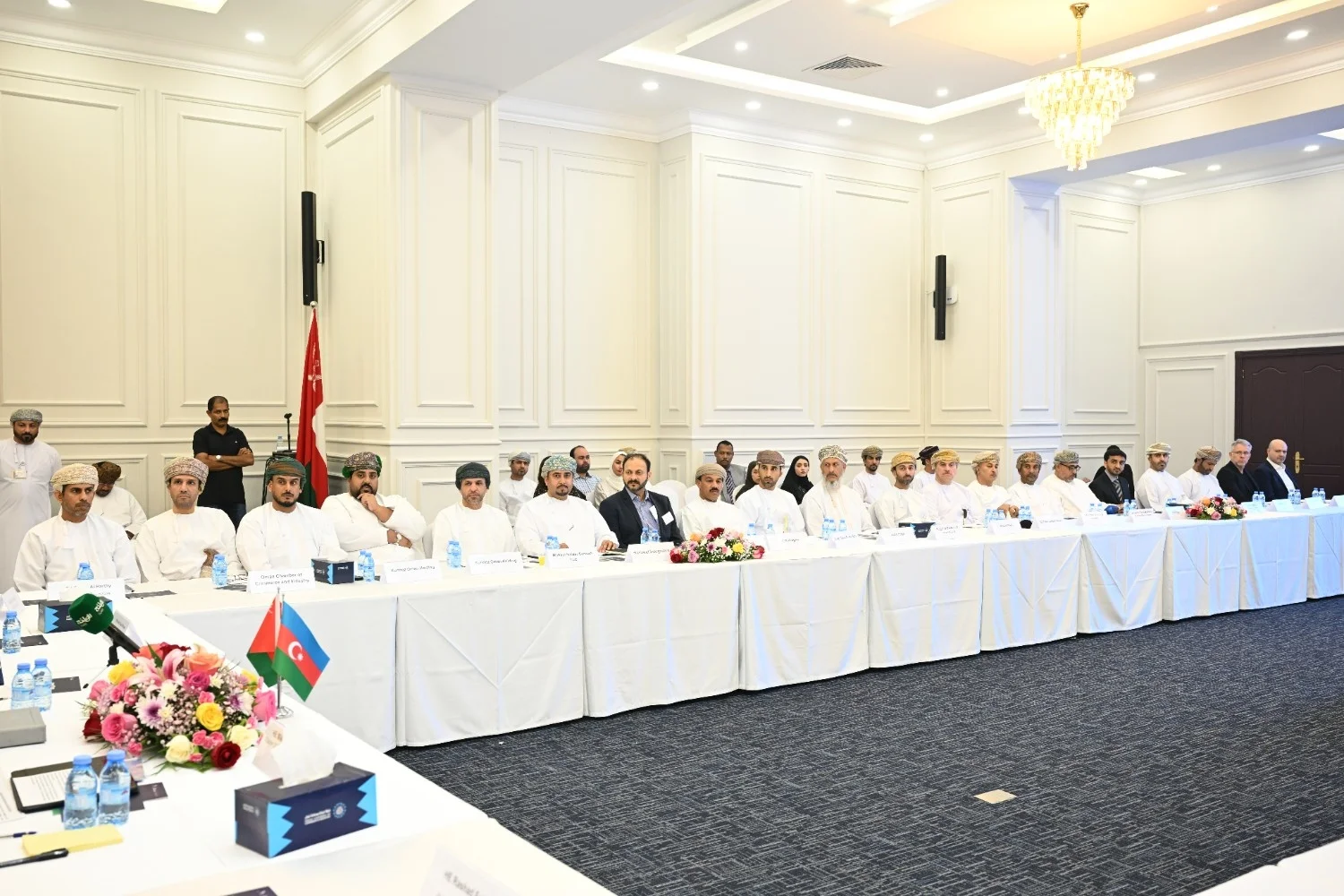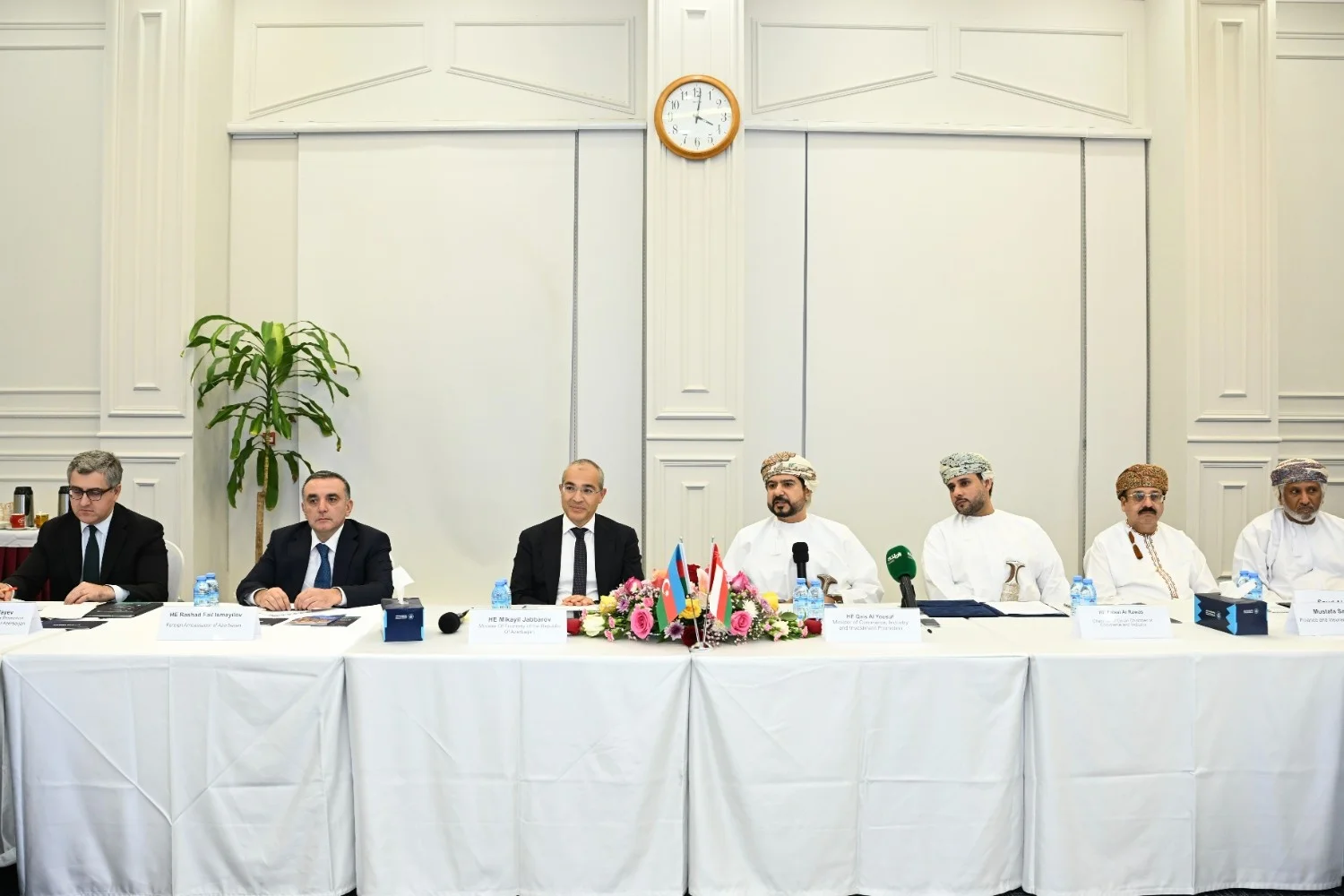 Azərbaycan nümayəndə heyətinin Oman Sultanlığına səfəri çərçivəsində Azərbaycan-Oman işgüzar dəyirmi masası keçirilib. Tədbirdə iqtisadiyyat naziri Mikayıl Cabbarov və Oman Sultanlığının ticarət, sənaye və investisiyaların təşviqi naziri Qais bin Mohammed Al Yousef və digər aidiyyəti şəxslər, biznes nümayəndələri iştirak ediblər.