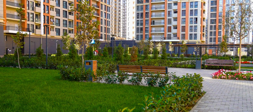 (®) Böyük şəhərlərdə yaşayış rahatlığını müəyyən edən əsas amillərdən biri də mənzilin rahatlığı ilə yanaşı, onun ətraf mühitidir. Son dövrlərdə uşaqların oynaya biləcəyi, ailənin dincələ biləcəyi, təbiətə yaxın, təhlükəsiz və funksional həyət mühiti insanların ən böyük istəklərindən birinə çevrilib.