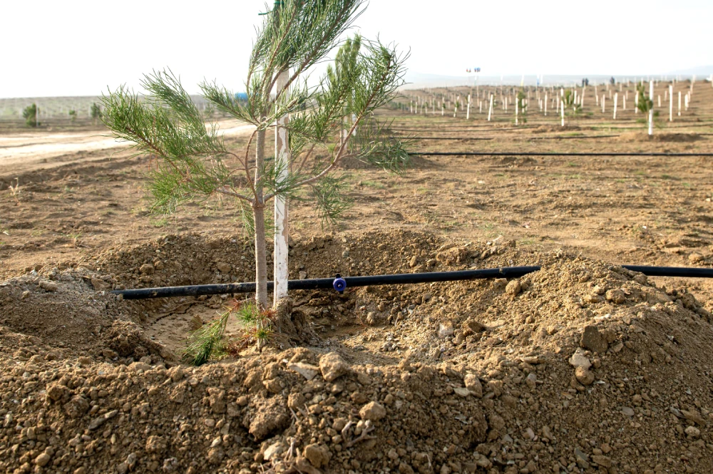 Bakı–Şamaxı yolunun 30-cu kilometrliyində yaşıllaşdırma üçün ayrılmış ərazidə keçirilən aksiya çərçivəsində 1 hektar sahədə ümumilikdə 625 ədəd ağac əkilib. Ərazinin iqlim xüsusiyyətləri nəzərə alınaraq Eldar şamı və zeytun növlərindən olan tinglər seçilib, həmçinin ağacların davamlı su təminatı üçün damcı-suvarma sistemi quraşdırılıb.