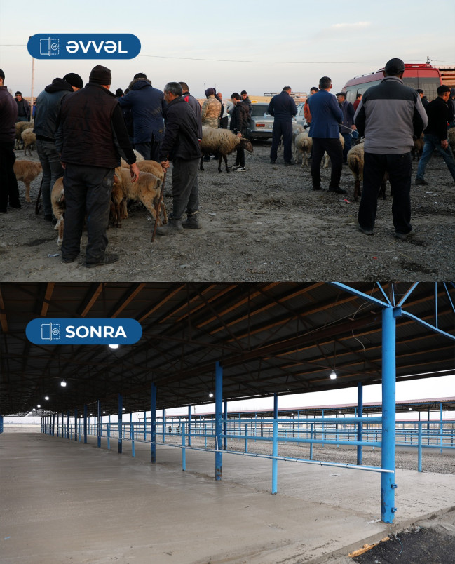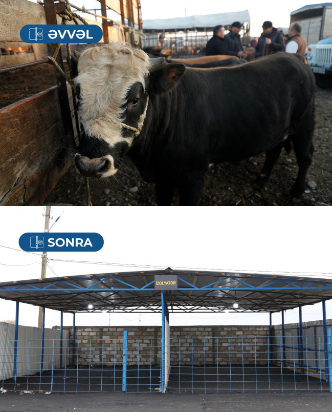 Qida Təhlükəsizliyi Agentliyinin yaydığı məlumatda bildirilir ki, bazarın girişində baytarlıq nəzarəti məntəqəsi tikilib, dezbaryer quraşdırılıb. Bundan başqa, heyvanlara baxış platformaları inşa edilib. Çardaqlar və satış pavilyonları qurulub. Ərazidə asfaltlama və betonlama işləri görülüb. Heyvan rifahı üçün su və yemlə təminat yaxşılaşdırılıb. Tullantıların daşınması və digər tələblərə uyğun şərait yaradılıb.