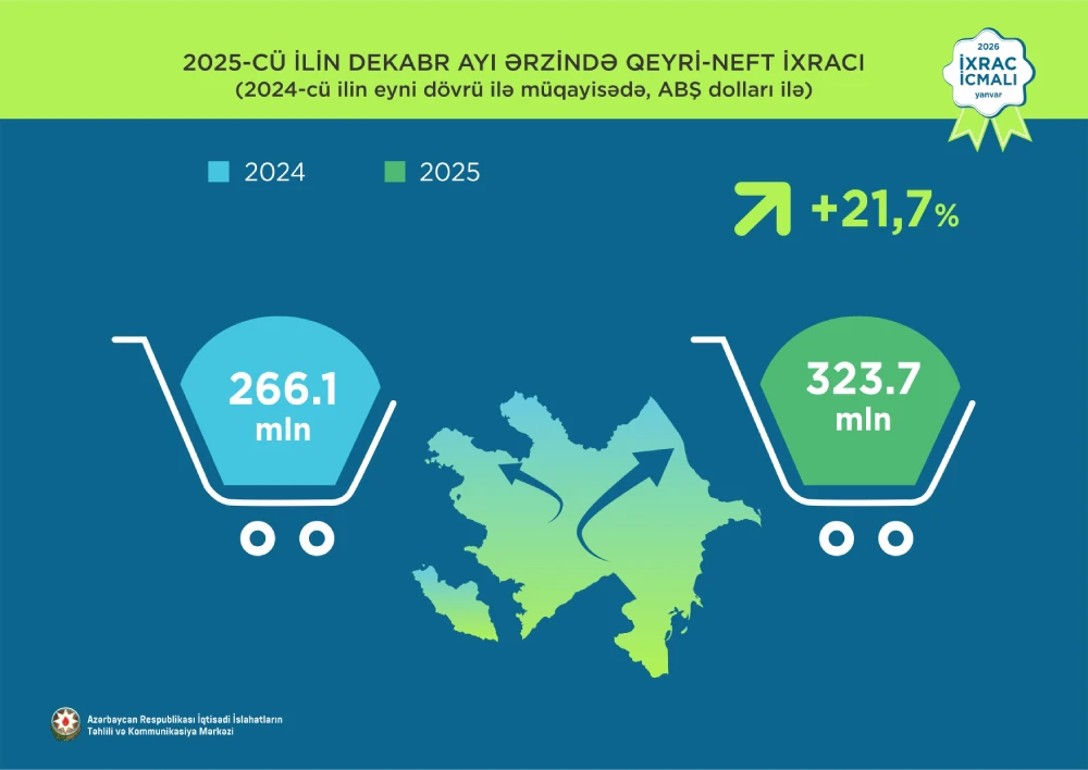 İqtisadi İslahatların Təhlili və Kommunikasiya Mərkəzi (İİTKM) “İxrac icmalı”nın 2026-cı ilin yanvar sayına dair ilkin rəqəmləri təqdim edib.