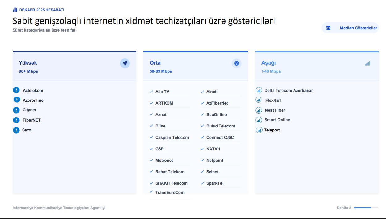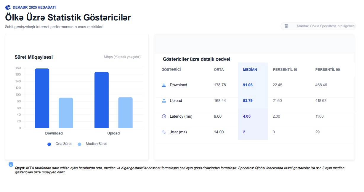 İKTA İnformasiya Kommunikasiya Texnologiyaları Agentliyi Ookla Speedtest Intelligence Azərbaycan internet sürəti sabit genişzolaqlı internet internet provayderləri Azərbaycan 2025 dekabr internet sürəti internet sürət göstəriciləri genişzolaqlı internet analizi internet performansı Azərbaycan provayder sürət reytinqi yüksək sürətli internet orta sürətli internet aşağı sürətli internet Mbps internet sürəti internet keyfiyyəti monitorinqi telekommunikasiya tənzimlənməsi İKTA internet hesabatı Azərbaycan provayder müqayisəsi Speedtest ölçmələri internet bazarının inkişafı provayder rəqabəti istehlakçı üçün internet seçimi milli internet indikatorları