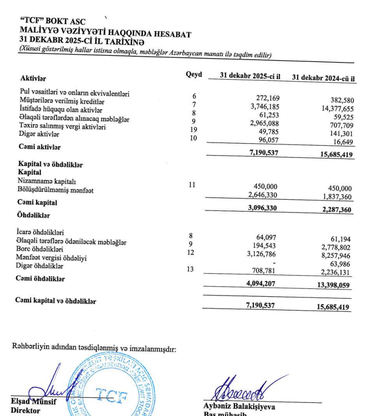TFCBOKT TFCBOKTASC xalismənfəət2025 TFCxalisgəlir TFC2025mənfəətartımı AzərbaycanBOKTsektoru TFCfaizvəkomissiyagəlirləri TFCkreditportfeli TFCportfelazalması BOKTmaliyyənəticələri Azərbaycanmikromaliyyə TFC2024gəlirlər TFC2025gəlirlər TFCəməliyyatxərcləri TFCehtiyatayırmaları TFCnizamnaməkapitalı BakuElectronicsMMC TFCBOKTtarixi BOKTxəbərlər Azərbaycanbankolmayankredittəşkilatı