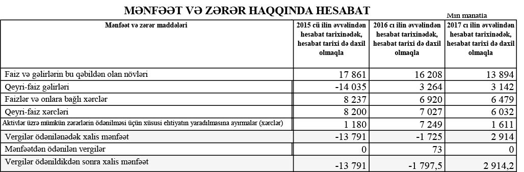 2017-dən xalis mənfəətlə çıxan banklardan biri məlum oldu
