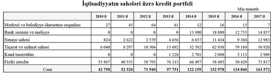 MÜŞTƏRİLƏRƏ VERİLƏN KREDİTLƏR ARTIB