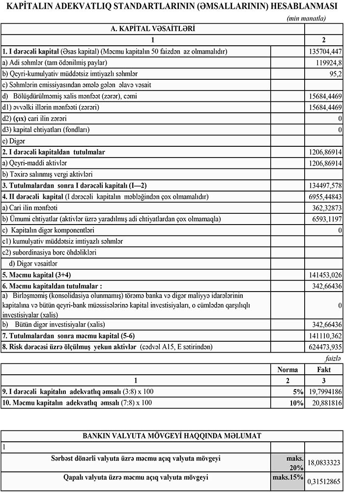 "AtaBank" ötən ilin sonunda 141 milyon 110 min manat məcmu kapitala malik olub.