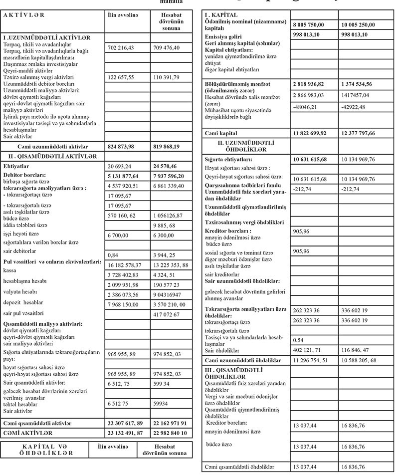 31.12.2017-ci il tarixinə “A-Qroup Sığorta Şirkəti”nin cəmi aktivləri 22 milyon 983 min manat, cəmi öhdəlikləri 10 milyon 605 min manat, cəmi kapitalı isə 12 milyon 378 min manat təşkil edib.