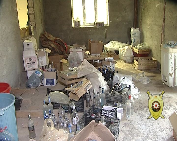 DİN-in mətbuat xidmətindən verilən məlumata görə, saxlanılan şəxslərə məxsus Abşeron rayonu Saray qəsəbəsində yerləşən gizli anbara və sexə baxış zamanı külli miqdarda saxta “Stoliçnaya”, “Absolut” araqları, “Jack Daniels” və “Chivas regal” viskiləri, bu içkilərin hazırlanmasında istifadə edilən mənşəyi məlum olmayan spirt, külli miqdarda aksiz markalar, etiketlər, qapaqlar və digər avadanlıqlar aşkar olunaraq götürülüb.