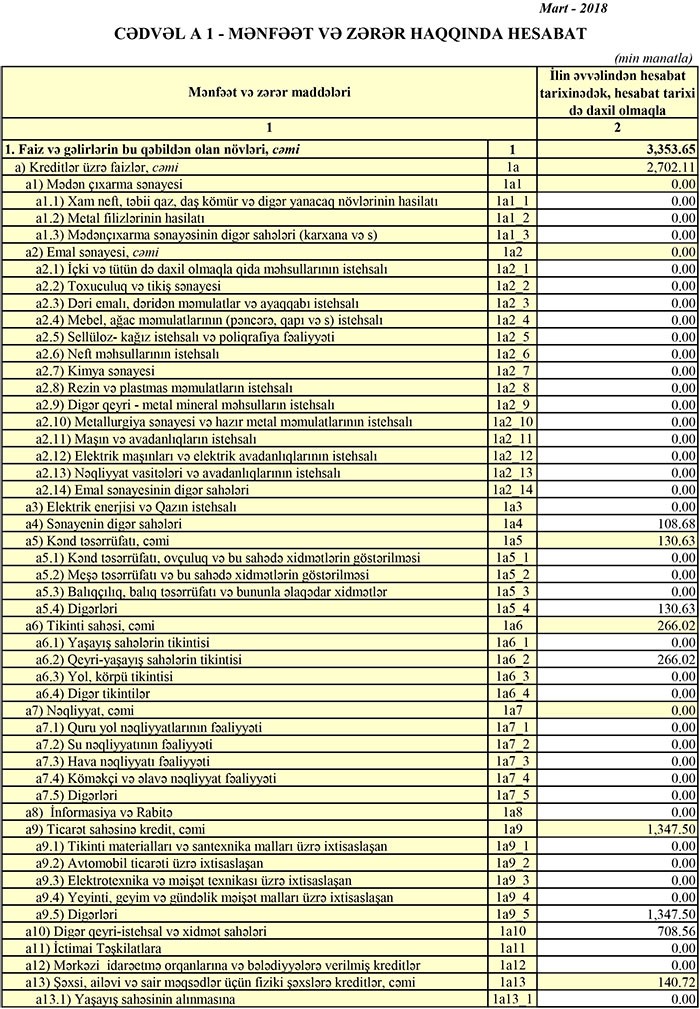 Banklardan biri 2018-in ilk rübünü mənfəətlə başa vurdu