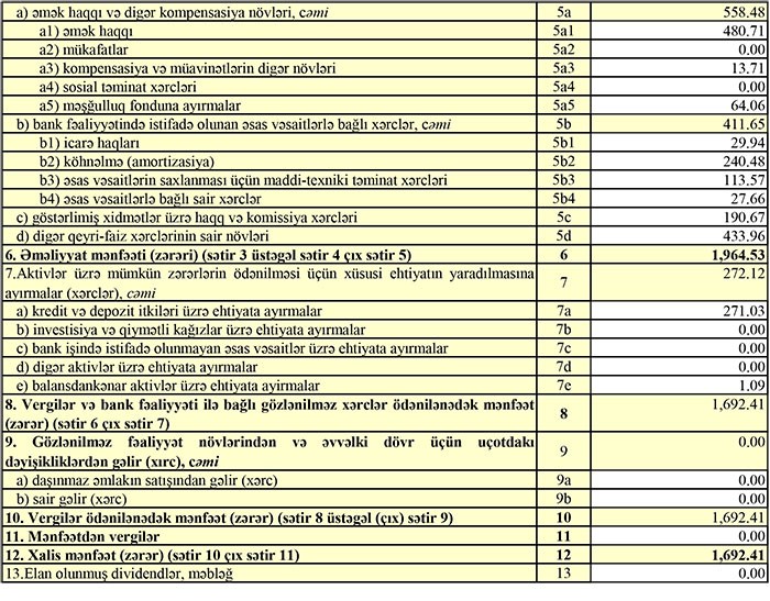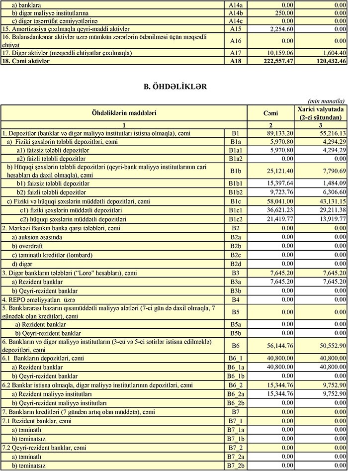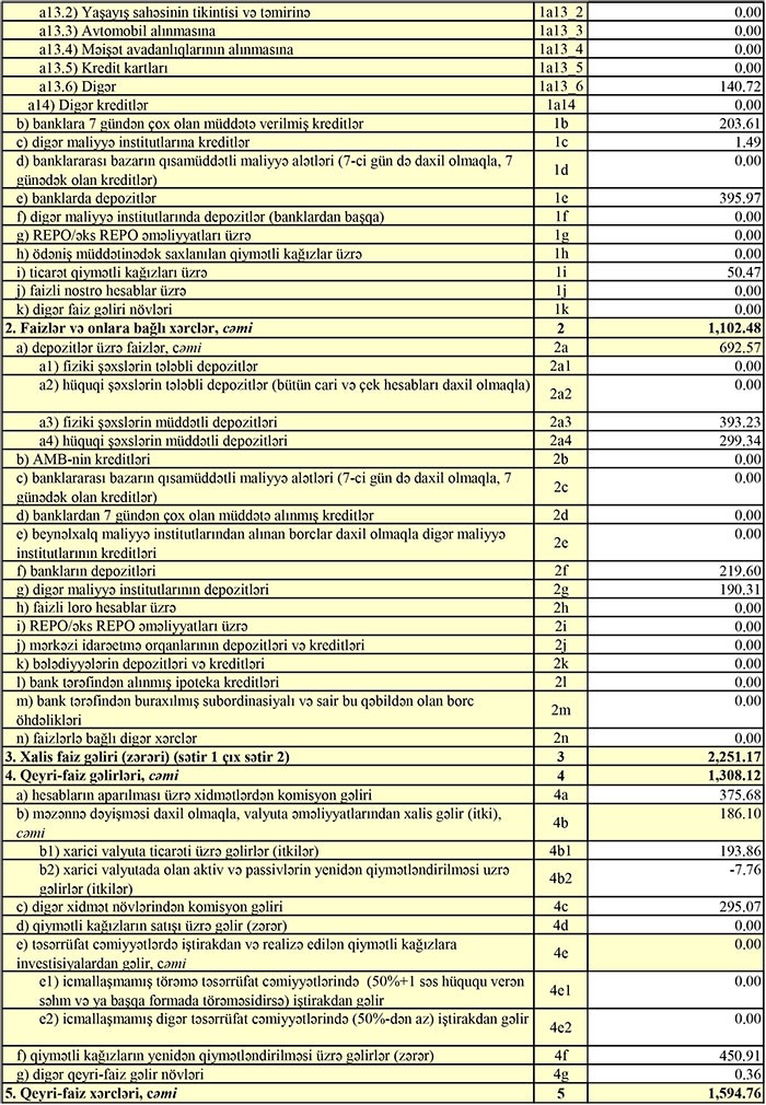 Bankın müştərilərə verdiyi kreditlər ötən ilin sonundakı 67 milyon 884 min manatdan 79 milyon 414 min manata yüksəlib. Depozitlər isə 80 milyon 128 min manatdan 89 milyon 133 min manata qalxıb.
