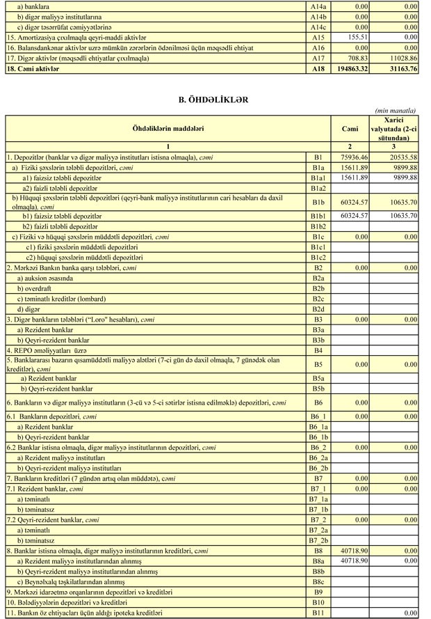 Azər Türk Bankın maliyyə vəziyyəti məlum olub