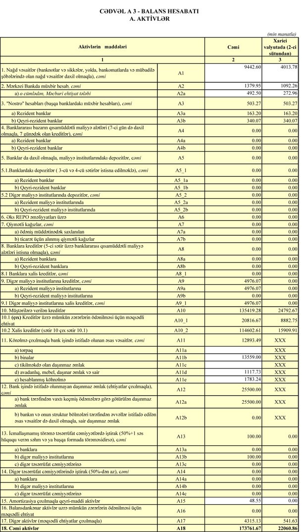 Azər Türk Bankın maliyyə vəziyyəti məlum olub