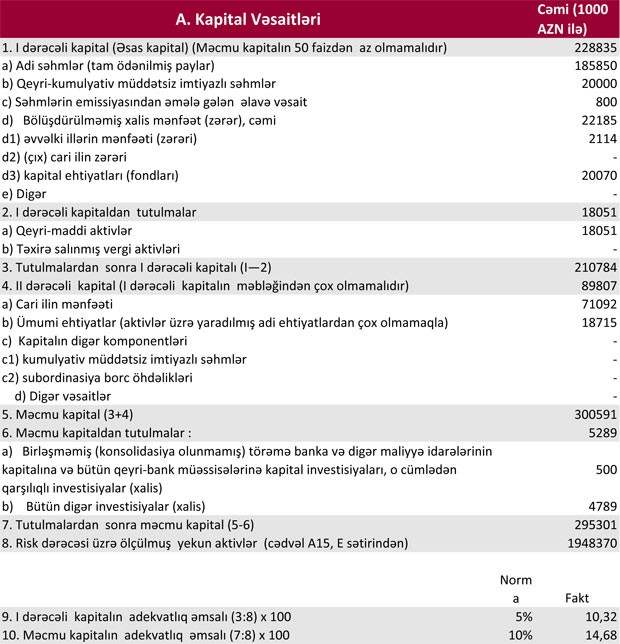 "Kapital Bank" 2016-cı ilin 9 ayını isə 41 milyon 511 min manat xalis mənfəətlə bağlamışdı.