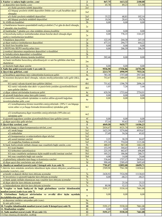 Bankın faiz gəlirləri, əməliyyat mənfəəti artıb, ehtiyatlara ayırması azalıb.