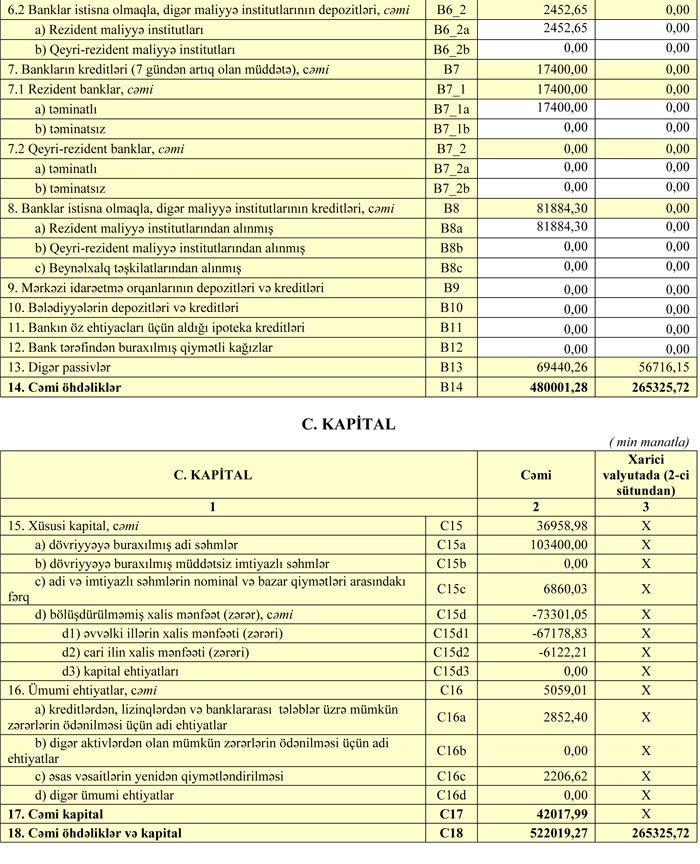 Azər Türk Bankın maliyyə vəziyyəti məlum olub