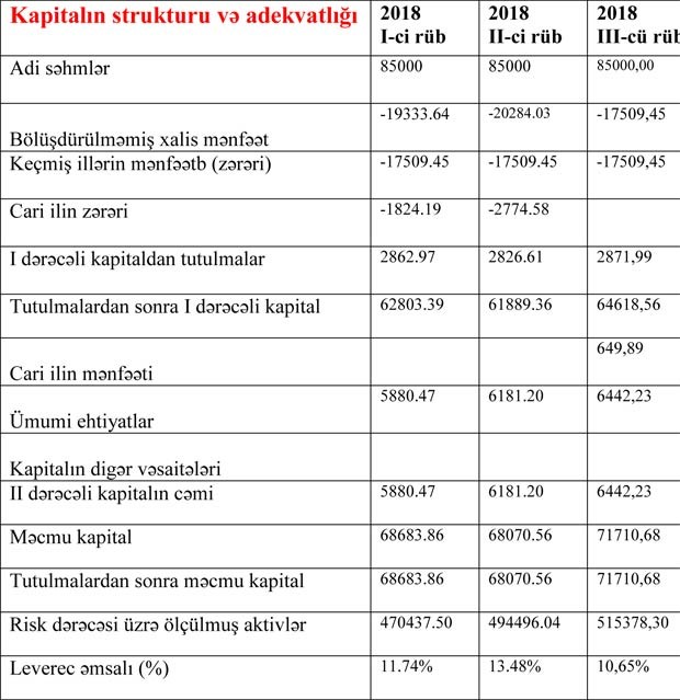 Bankı müştərilərə verdiyi kreditlər ötən ilin sonundakı 349 milyon 71 min manatdan 30 Sentyabr 2018-ci il tarixində 376 milyon 319 min manata yüksəlib (7,8% artım).