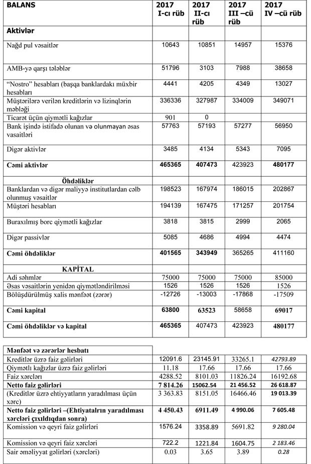 Azər Türk Bankın maliyyə vəziyyəti məlum olub