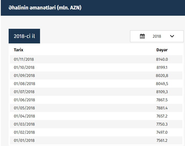 Sentyabr ayının sonunda əhalinin banklarda 8 milyard 199.1 milyon manat əmanəti var idi.