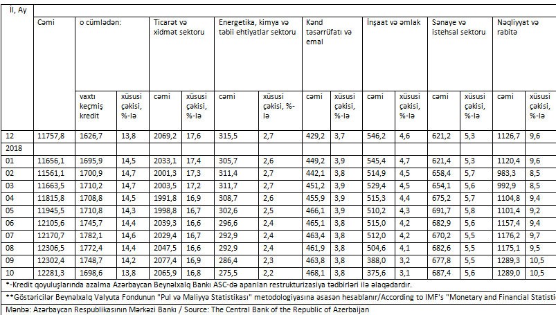 -Digər sektorlara verilmiş kreditlər 35 milyon manat artaraq 182 milyon manata yüksəlib.