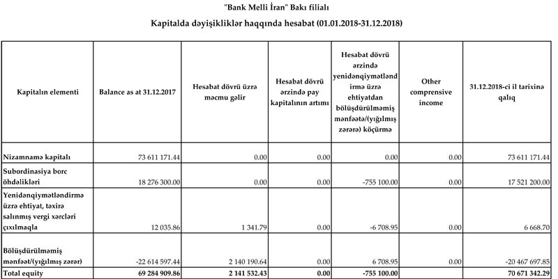 2017-ci ildə "Bank Melli İran" Bakı filialının xalis mənfəətinin yüksək olması kredit və depozit itkiləri üzrə yaradılmış ehtiyatın 5 milyon 750 min manatının azad olması idi. Ötən il yaradılmış ehtiyatın cəmi 521 min manatı azad olub. Qeyd edək ki, kredit riskləri azalan və ya gecikmədə olan kredilər geri qaytarılan zaman ehtiyatlar azad olur və gəlirə əlavə edilir.