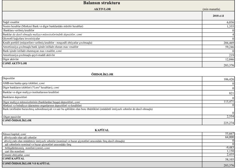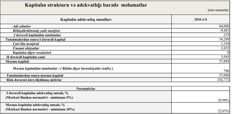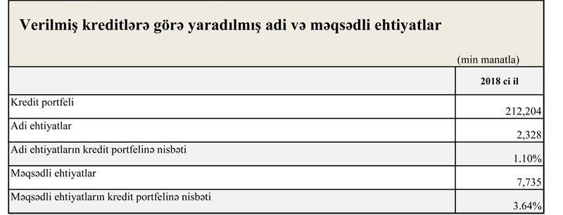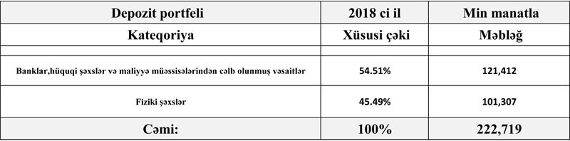 “NBC Bank”da depozitlər isə 43,9% artaraq 2017-ci ilin sonundakı 73 milyon 969 min manatdan 2018-ci ilin sonunda 106 milyon 426 min manata yüksəlib.