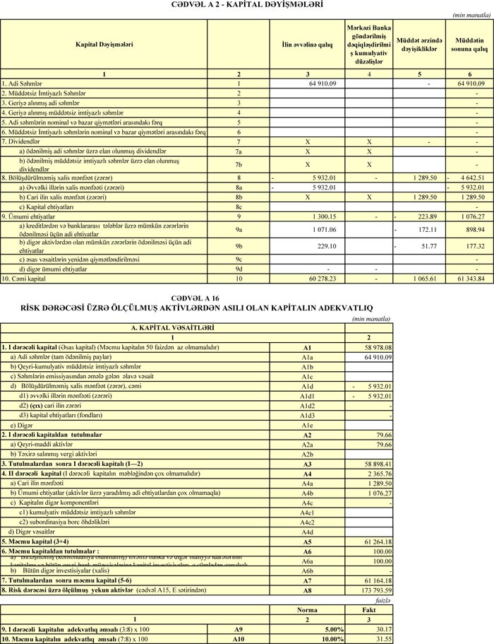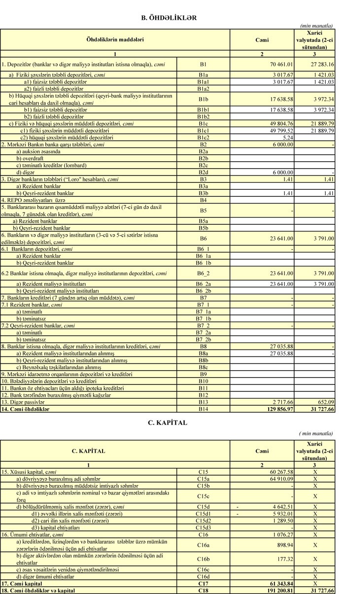 İllik müqayisədə Bankın depozit portfeli 18% azalaraq 70 milyon 461 min manat təşkil edib.