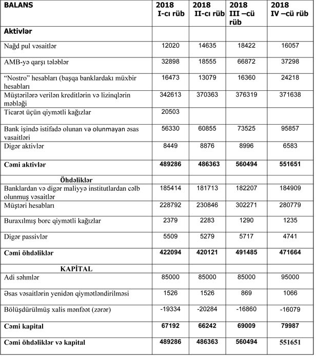 Azər Türk Bankın maliyyə vəziyyəti məlum olub
