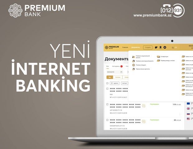 "Premium Internet-Banking" banka gəlmədən müxtəlif xidmətlər göstərən geniş siyahılı təchizatçıların ünvanına sərbəst ödənişlər etmək imkanı verən müasir bank xidməti növüdür. Müştəridən tələb olunan sadəcə heç bir əlavə proqram təminatı quraşdırmadan istənilən kompyuterdən internet şəbəkəsinə girişin əlçatan olmasıdır.