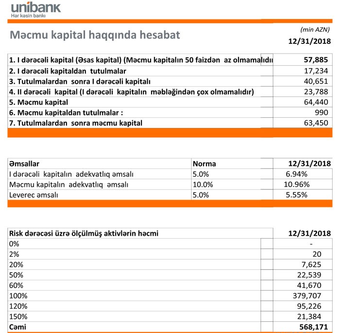 “Unibank” KB ASC 2018-ci ilin maliyyə nəticələrini açıqlayıb.