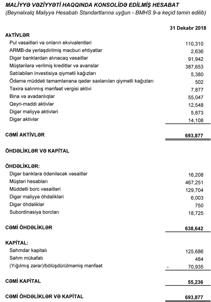 Azər Türk Bankın maliyyə vəziyyəti məlum olub