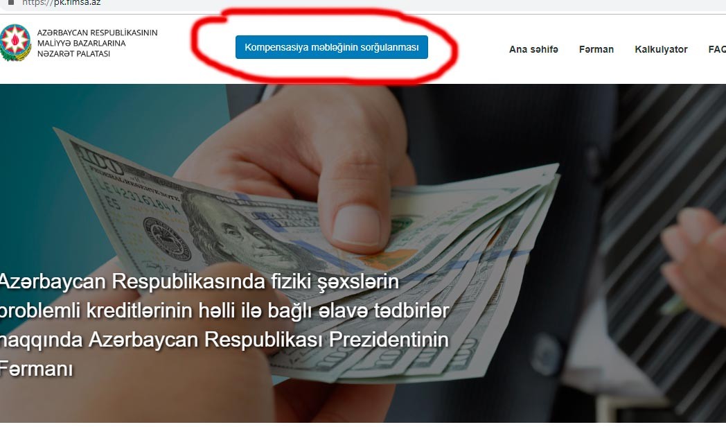 Palatanın saytının "Problemli kreditlərin həllinə dair məlumat" hissəsində “Kompensasiya məbləğinin sorğulanması” pəncərəsi yaradılıb.