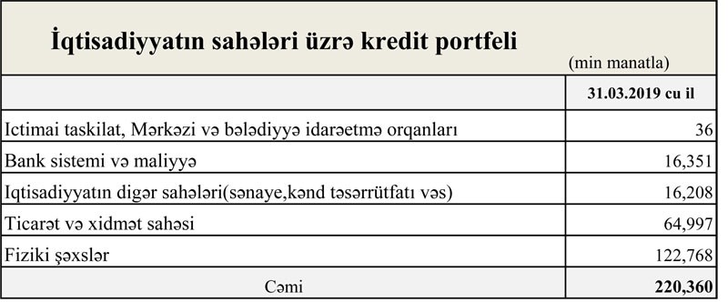 31 Mart 2019-cu il tarixində "NBC Bank" 288 milyon 374 min manat cəmi aktivlərə malik olub. Aktivlərin 212 milyon 489 min manatını müştərilərə verilmiş kreditlər təşkil edib. 2018-ci ilin sonunda Bankın 283 milyon 376 min manat cəmi aktivlərinin 204 milyon 469 min manatını müştərilərə verilmiş kreditlər təşkil etmişdi. 31 Mart 2018-ci il tarixində isə müştrilərə verilmiş kreditlər 164 milyon 628 min manat təşkil etmişdi. Son 1 ildə Bankın kredit portfeli 29,1% artıb. Müştərilərə verilən kreditlərin artması ilə Bankın gələcəkdə gəlirlərinin artacağı gözlənilir.