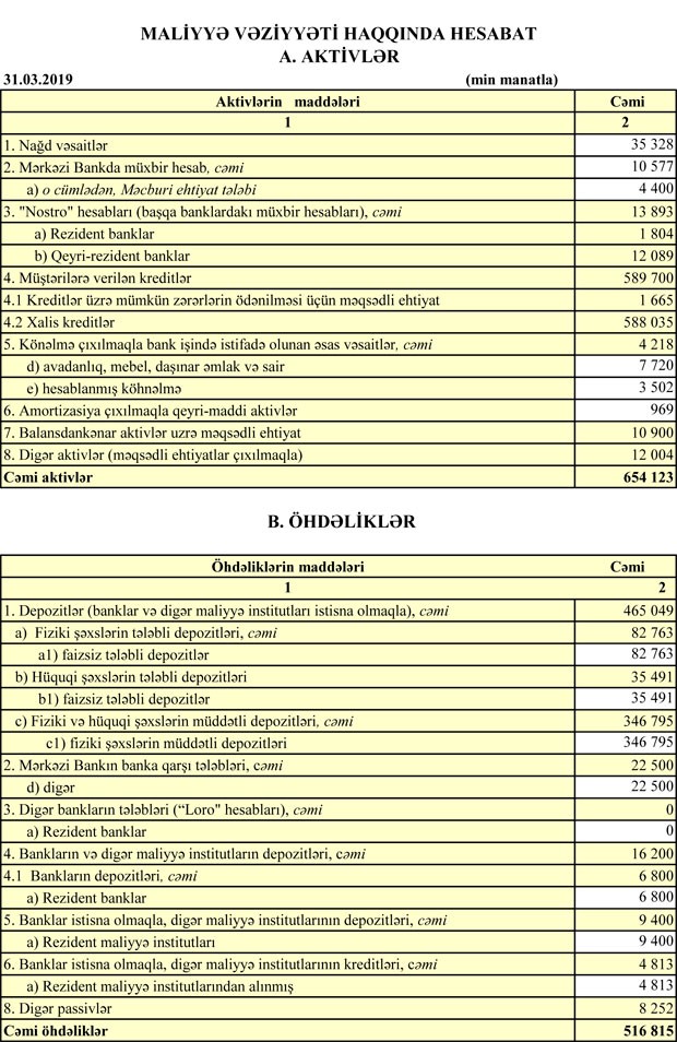 Azər Türk Bankın maliyyə vəziyyəti məlum olub