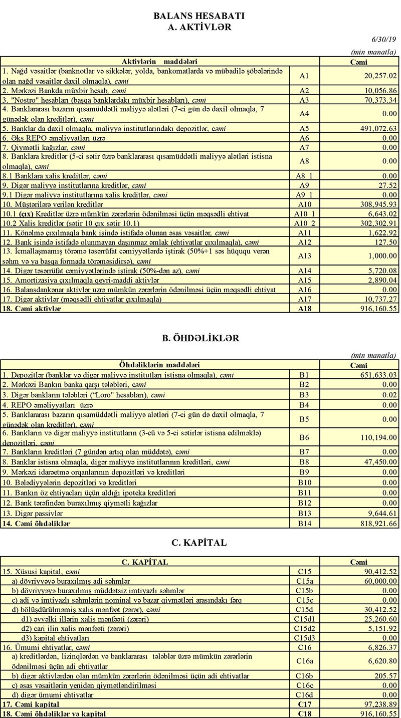 “Azərbaycan Sənaye Bankı” ilk 6 aydakı 6 milyon 879 min manat əməliyyat mənfəətinin 403 min manatını aktivlər üzrə mümkün zərərlərin ödənilməsi üçün xüsusi ehtiyatın yaradılmasına ayırıb (ötən il 615 min manat) və 1 milyon 324 min manat mənfəət vergisi ödəyib. Nəticədə Bank 2019-cu ilin 1-ci yarısını 5 milyon 152 min manat xalis mənfəət ilə başa vurub.