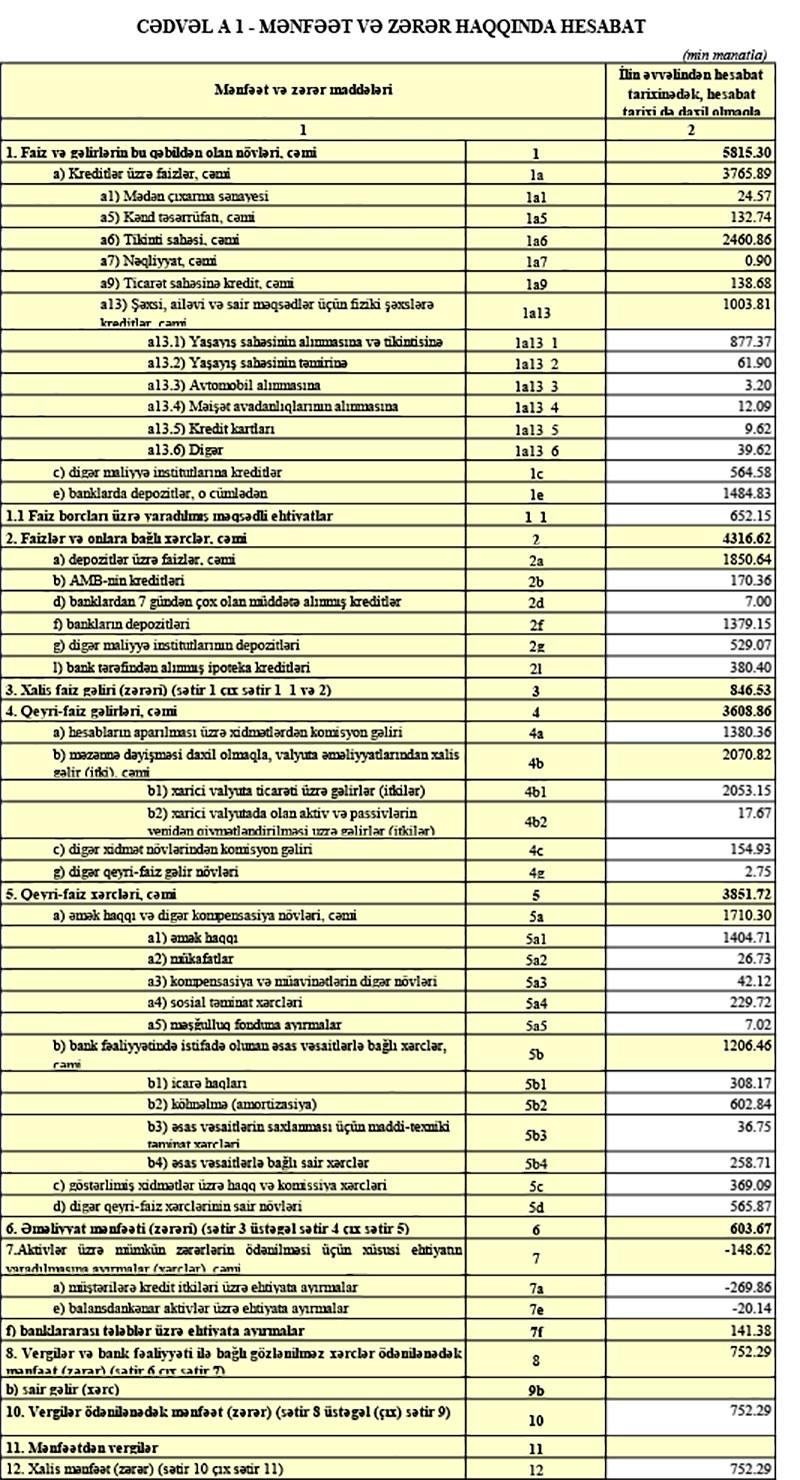Bankdan "Marja"ya daxil olmuş məlumatda bildirilir ki, qeyd olunan müddət ərzində Bank 752.29 min manat mənfəət əldə etmişdir.
