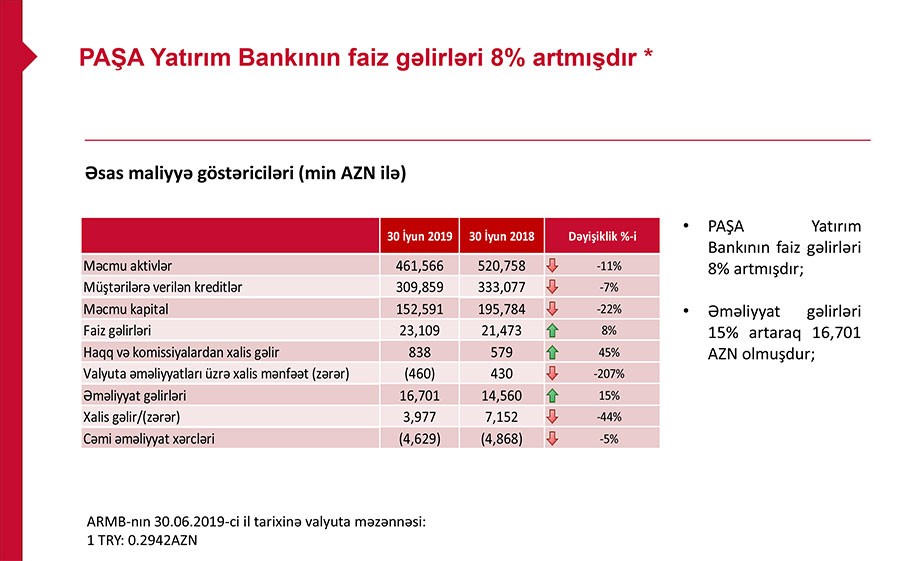 “PAŞA Bank Azərbaycan”, “PAŞA Bank Georgia” və “PAŞA Yatırım Bankası A.Ş.” banklarının daxil olduği “PAŞA Bank” qrupunun 30 iyun 2019-cu il tarixinə maliyyə göstəriciləri açıqlanıb.