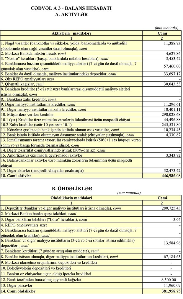 Müqayisə üçün qeyd edək ki, ötən ilin 9 ayında “Nikoil Bank” aktivlər üzrə mümkün zərərlərin ödənilməsi üçün xüsusi ehtiyatın yaradılmasına 108 milyon 149 min manat ayırdığından, 28 milyon 248 min manat əməliyyat mənfəəti bu ayırma üçün kifayət etməmiş və 79 milyon 901 min manat zərər yaranmışdı.
