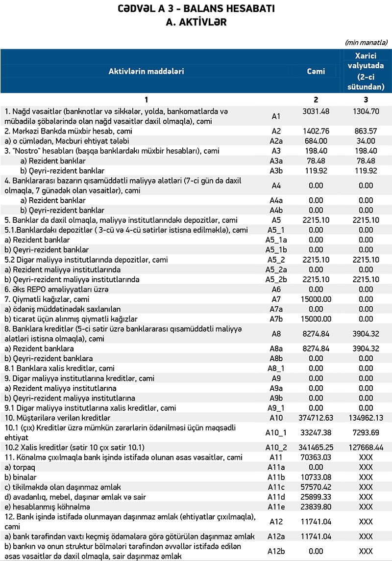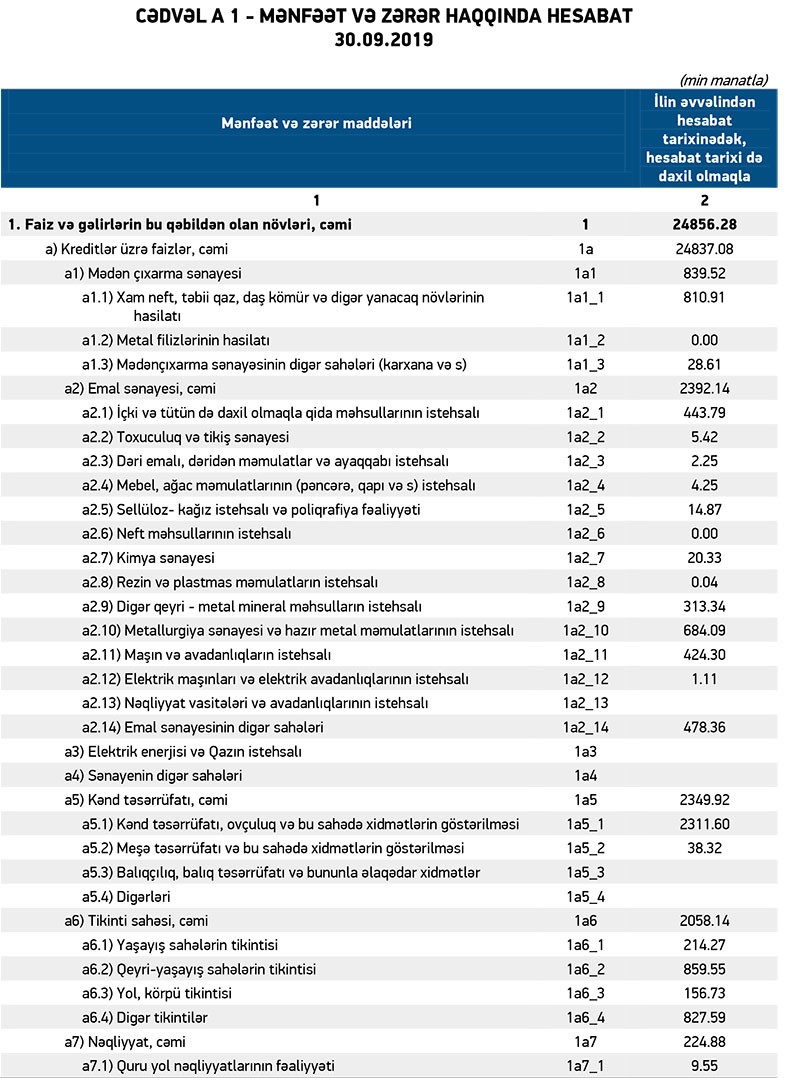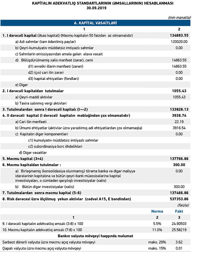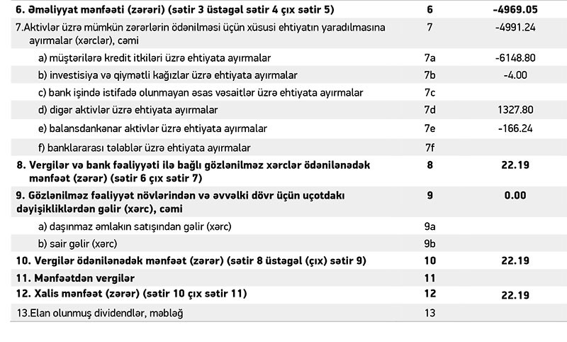Bank ötən ilin 9 ayının yekunları üzrə 86 min manat xalis mənfəət açıqlamışdı. Aktivlər üzrə mümkün zərərlərin ödənilməsi üçün yaradılmış ehtiyatın 1 milyon 631 min manatının azad olması həm bankın əməliyyat zərərini bağlamış, həm də 86 min manat xalis mənfəəti təmin etmişdi.