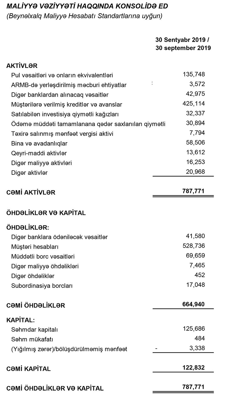 2019-cu ilin 9 ayı ərzində “Unibank”ın cəmi aktivləri 93 milyon 894 min manat artaraq 787 milyon 771 min manata, müştərilərə verilən kreditlər isə 37 milyon 461 min manat artaraq 425 milyon 114 min manata yüksəlib.