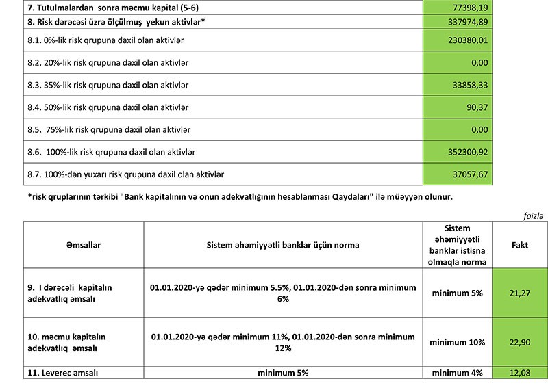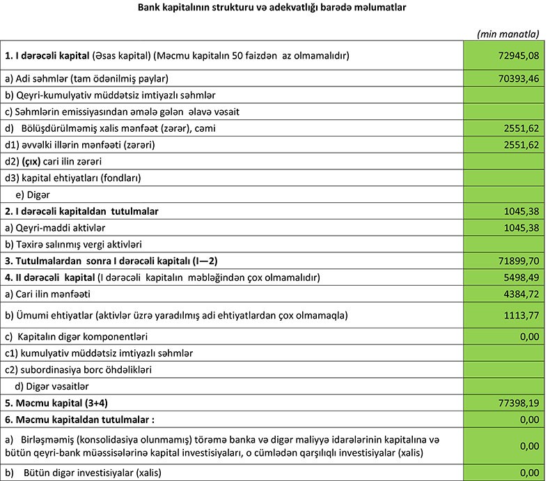 30 Sentyabr 2019-cu il tarixində “AFB Bank” 78 milyon 444 min manat cəmi balans kapitalına malik olub.