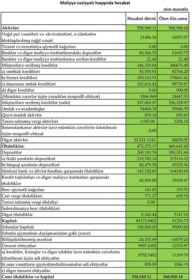 Bankın cəmi gəlirlərinin 217 min manat artması ilə bərabər, xəmi xərcləri 2 milyon 120 min manat azalıb.