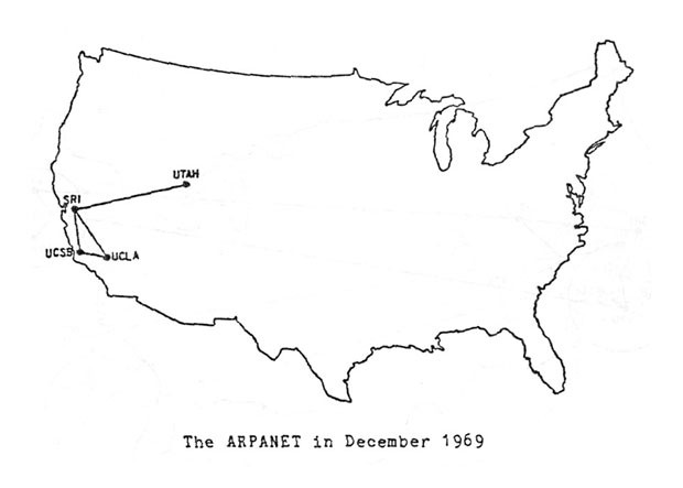 1958-ci ildə ABŞ prezidenti Duayt Eyzenhauer tərəfindən SSRİ-nin 1957-ci ildə dünyada ilk süni peyki fəzaya buraxmasına reaksiya olaraq təsis edilən ABŞ-ın Müdafiə Nazirliyinin Perspektiv Tədqiqat Layihələrinin İdarəedilməsi üzrə Agentliyi olan ARPA (ARPA - Advanced Research Projects Agency) bir neçə il sonra dünyada ilk olaraq müasir internetin əsasının yaradılmasına nail olur. Qurum daha sonra DARPA olaraq adlandırılır. Agentlik 1960-cı illərdə kompüter şəbəkəsinin qurulması üzərində çalışır və 1967-ci ildə ARPANET adlanan plan meydana çıxır. ARPANET şəbəkəsi üzrə ilk məlumat 29 oktyabr 1969-cu ildə kompüter elmləri professoru Leonard Kleynrok tərəfindən Los Ancelesdəki Kaliforniya Universitetindən ikinci şəbəkə nöqtəsi olan Stenford Tədqiqatlar İnstitutuna göndərilir. Daha sonralar məhz 29 oktaybr tarixi ümumdünya internet günü olaraq qeyd olunur. Sonrakı illərdə ARPANET şəbəkəsinə qoşulan məntəqələr də getdikcə çoxalır və beləliklə vahid şəbəkə formalaşır.