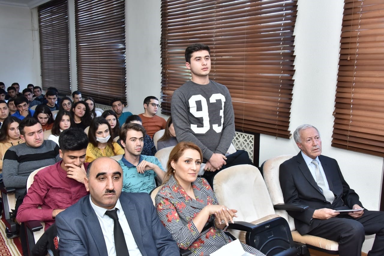 Maliyyə və mühasibat uçotu kafedrasının müdiri dosent Loğman Abdullayev və kafedranın baş müəllimi Mehman Əhmədzadə mövzu ətrafında çıxış ediblər.
