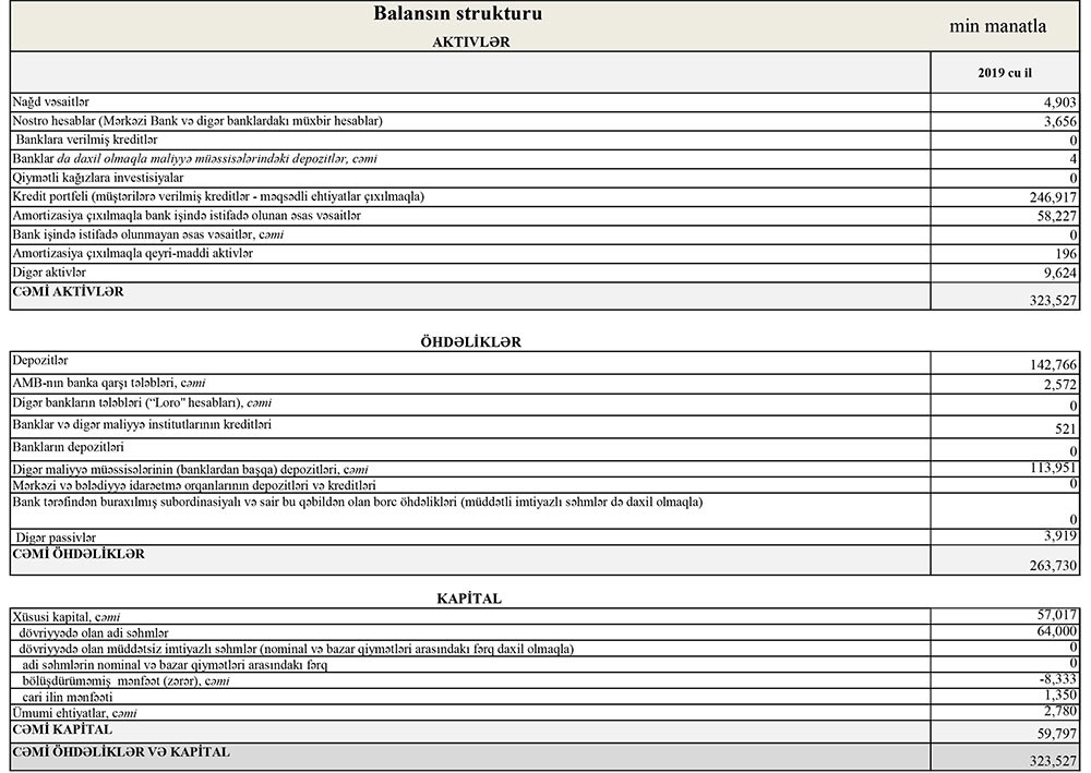 Qısası, ötən il Bankın 23 milyon 998 min manat cəmi gəlirlərinə qarşı cəmi xərcləri 24 milyon 413 min manat təşkil edib. Əvvəlki dövrlərdə aktivlər üzrə mümkün zərərlərin ödənilməsi üçün yaradılmış xüsusi ehtiyatdan 1 milyon 764 min manatın azad olması xərclərin gəlirləri 415 min manat üstələməsini bağlayıb və nəticədə Bank ötən ili 1 milyon 350 min manat xalis mənfəət ilə başa vurub. Yaradılmış ehtiyatın azad olması Bankın gecikmədə olan kreditlərinin azaldığına işarədir.