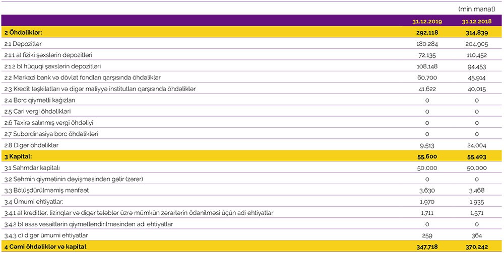 31 Dekabr 2019-cu il tarixində “Azər-Türk Bank” 50 milyon 324 min manat məcmu kapitala malik olub.