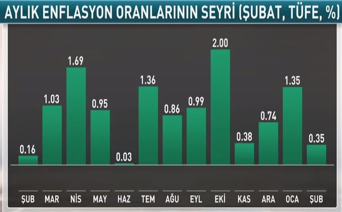 Türkiyədə inflyasiya Fevralda aylıq 0.35%, illik 12.37% olub.