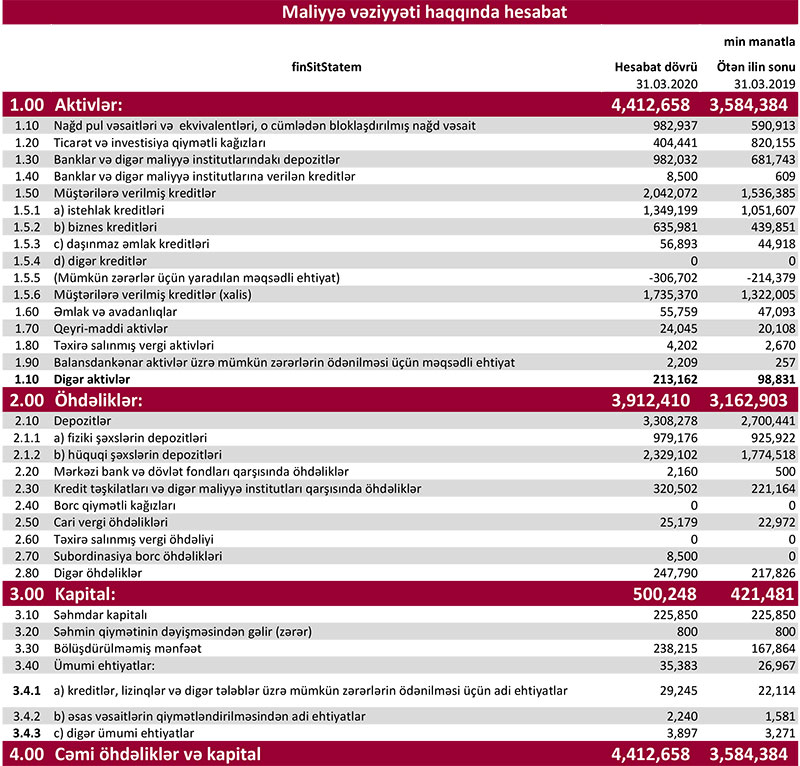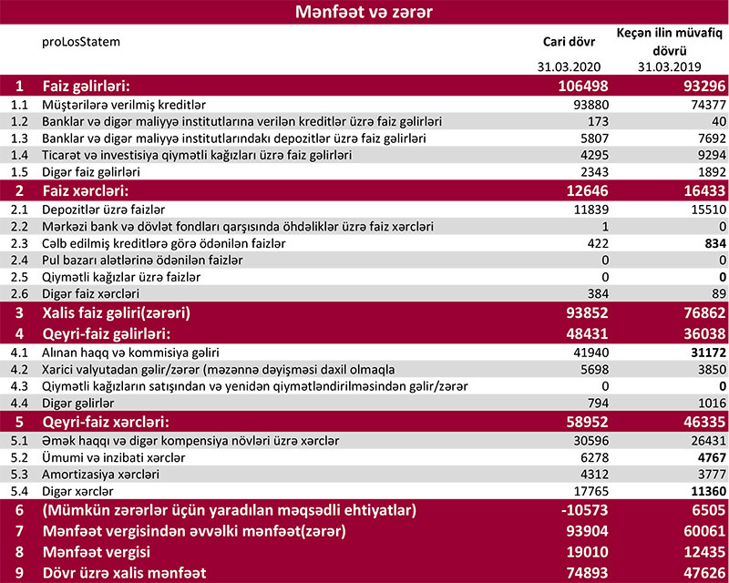 Qısası, ötən ilin 1-ci rübü ilə müqayisədə 2020-ci ilin 1-ci rübündə Kapital Bankın cəmi gəlirləri 25 milyon 595 min manat və ya 19,7%, cəmi xərcləri isə 8 milyon 830 min manat və ya 14% artıb