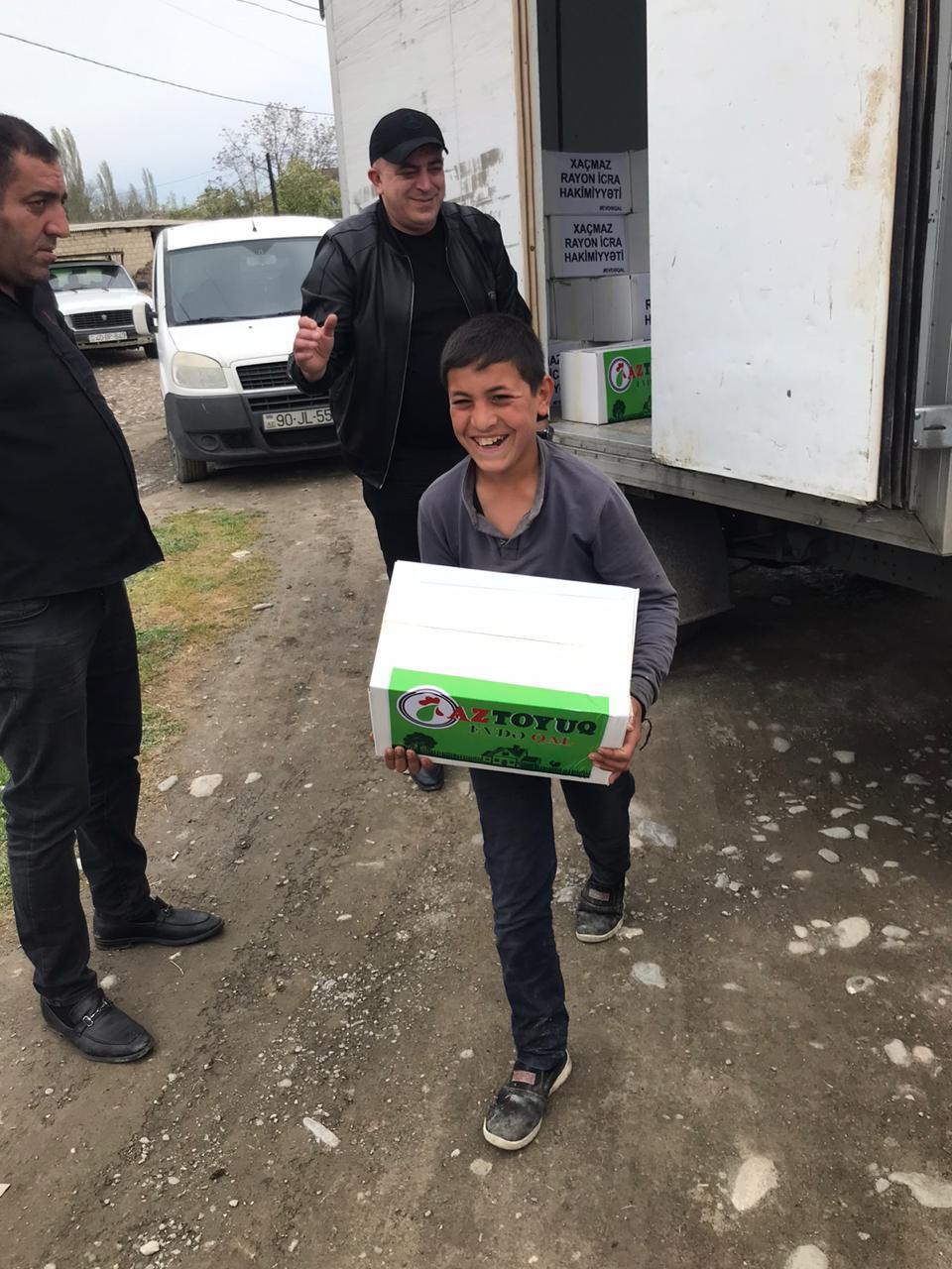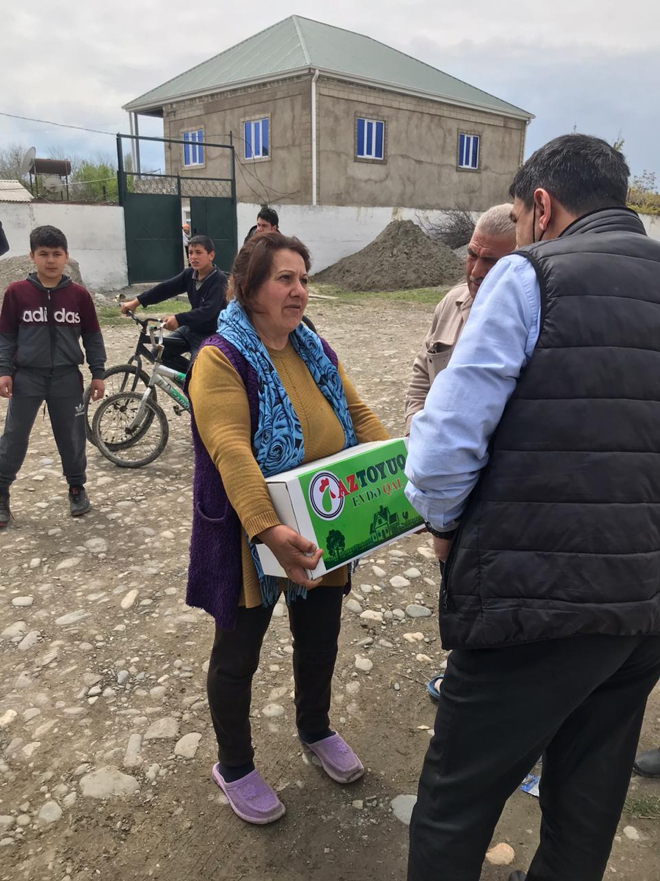 Aprelin 24-də isə “AzToyuq” MMC Xaçmaz rayonu icra hakimyəti ilə birlikdə Xaçmaz rayonu Çarxı kəndində yaşayan 350 aztəminatlı ailəyə ərzaq yardımı paylamışdır.