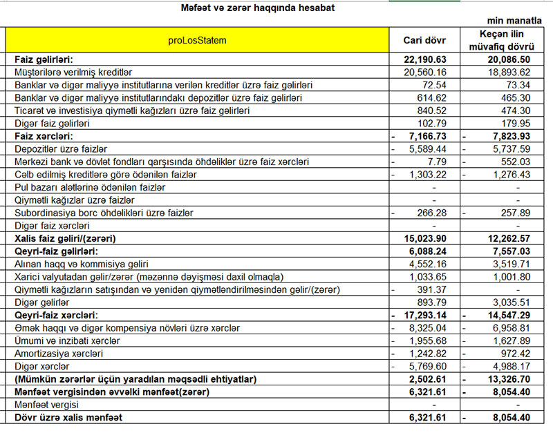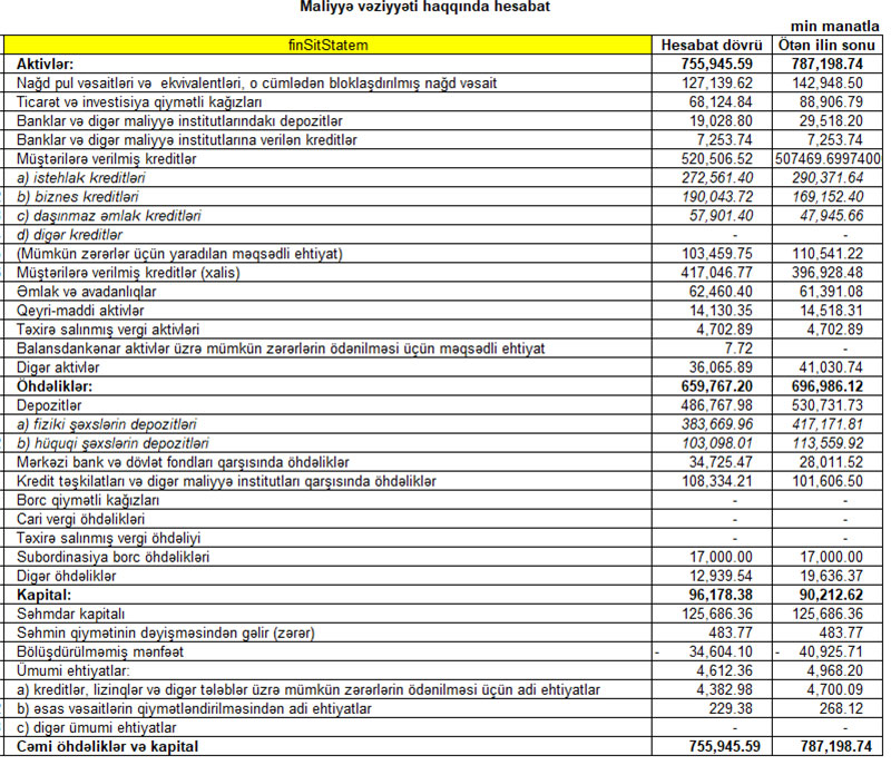 Azərbaycanın tanınmış bankı 6 milyon manatdan çox xalis mənfəət açıqladı